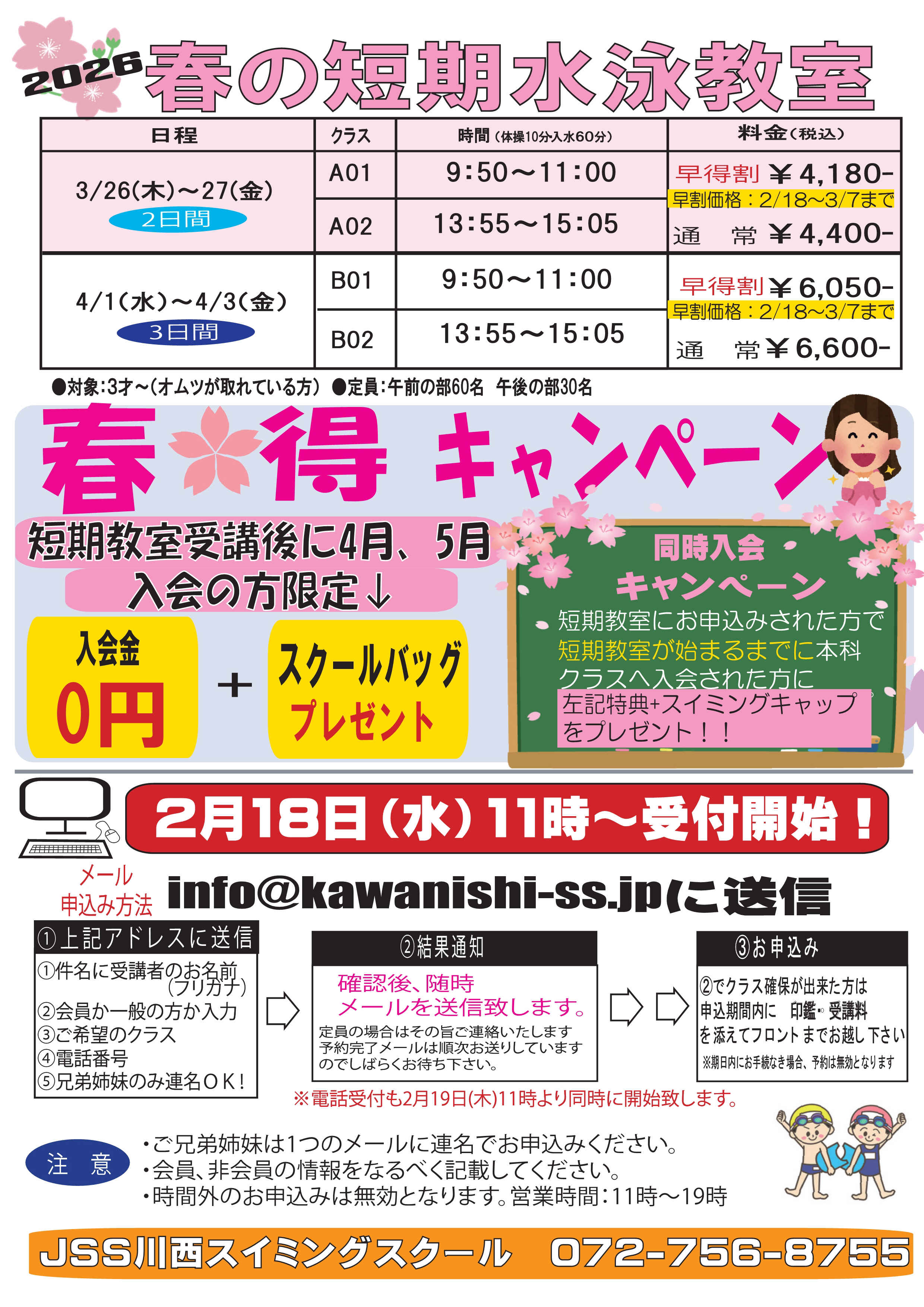 1月のレッスンに1回でも出席がある場合は受理できません。 |